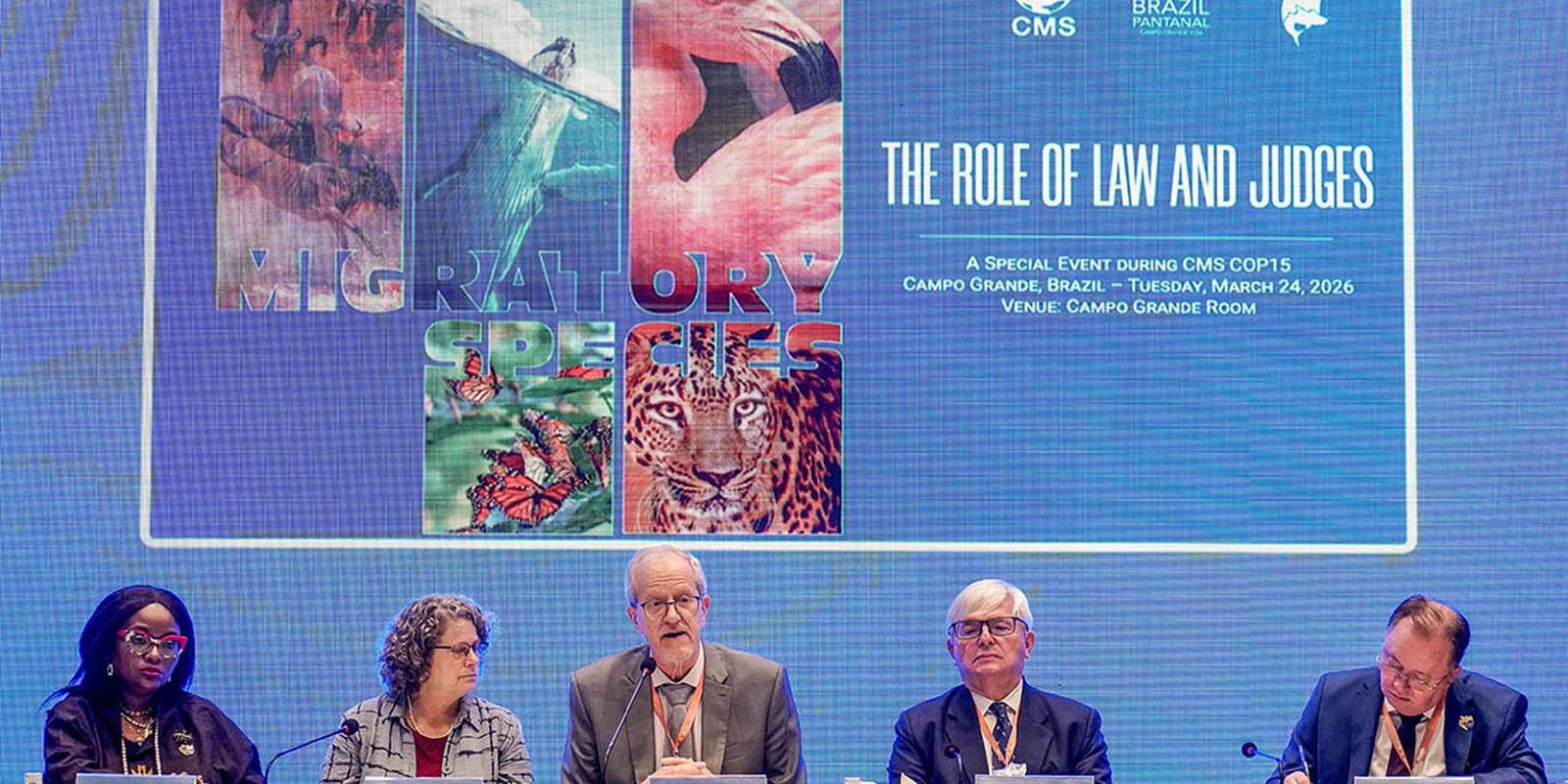 A conferência em Campo Grande também foi palco de debates sobre a importância das leis nacionais e das instituições jurídicas na implementação de acordos ambientais multilaterais. A mesa contou com o presidente da COP15, João Paulo Capobianco, o presidente do Supremo Tribunal de Justiça Herman Benjamin, o desembargador Pavan e a secretária-executiva da Convenção sobre a Conservação de Espécies Migratórias de Animais Silvestres (CMS), Amy Fraenkel.